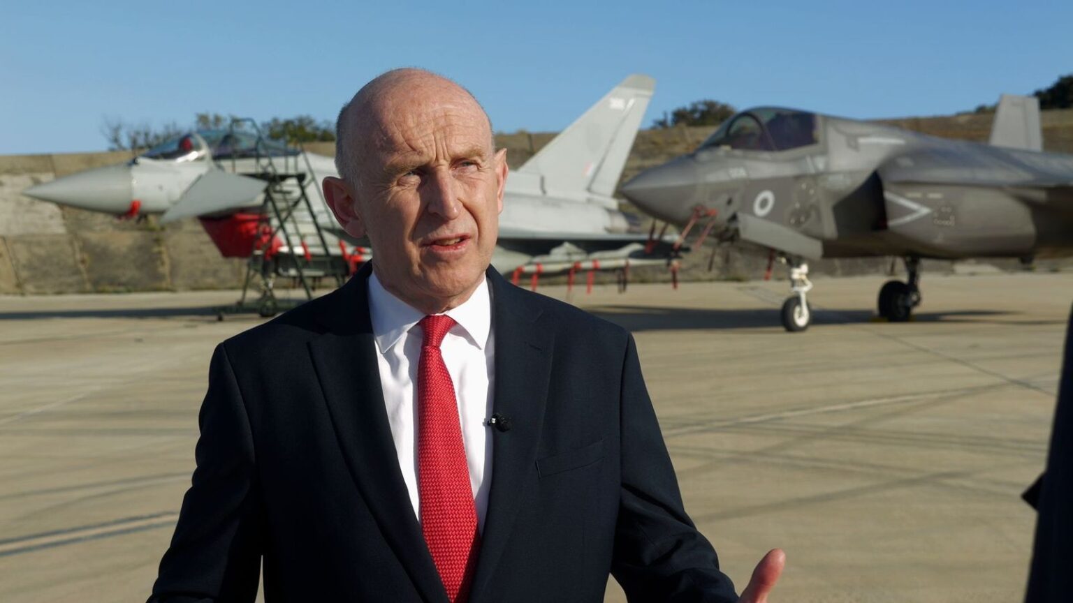 Defence Secretary John Healey interviewed at RAF Akrotiri in Cyprus.