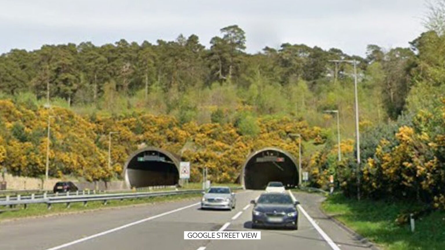 It was reported that a red Ford Fiesta had left the road.The incident happened just after Hindhead Tunnel.Hampshire and Isle of Wight Constabulary said the two people in the car, a 43-year-old woman and a seven-year-old girl, who were both from Portsmouth, died at the scene.