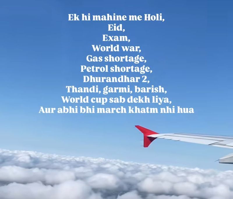 From Holi celebrations, exam stress, cricket fever to global tensions, March 2026 has squeezed in a whole year’s worth of drama. Not to forget Eid is almost here. And then we have the weather playing tricks on us — cool mornings, scorching afternoons and surprise rain showers — all in one day.In a span of weeks, we have lived through what feels like an entire year.Meanwhile, a viral clip of a penguin walking away from its colony is also being used to represent the feeling of “walking into the abyss” of an endless March.Many feel like March 2026 is a whole year packed into just one month.Credit: InstagramNetizens call it a ‘relentless rollercoaster’:“Bro, maine toh break up bhi dekh liya,” a user joked. Another reacted, “Don’t forget Dhurandhar 2.”A third wrote, “This isn’t March. This is a year-end recap happening in real time.” “How can you forget Navratri and Lunar Eclipse?,” another commented.A user summed up the mood saying: “March 2026 is turning out to be one of the most chaotic months since 2019 – and we’re not even done yet.”Another said, “Well April is going to be the start of the end for american establishment as their markets will flush and US dollar will be devalued. Violent protests will take place, Iran might strike mainland USA with Khoramshahr 5. If you thought March was chaotic wait till April comes.”