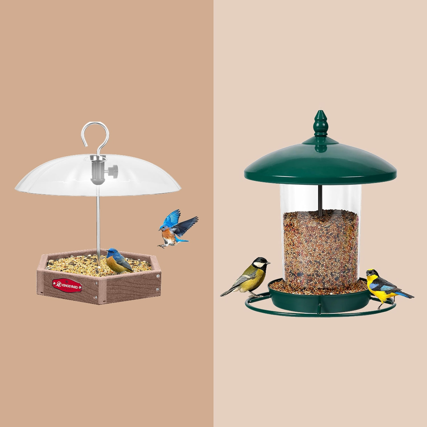If you want to attract birds to your yard or porch, a bird feeder is one of the best ways to do it. Not into feathered friends? Bird feeders also make a great gift for family members or friends who are nature lovers. Whether buying a bird feeder for yourself or as a gift, you want it to safely attract feathered friends. To help you shop, I spoke with bird experts about what to look for in a bird feeder and what to fill it with. I also asked them for bird feeder recommendations, which I compiled into a list below.Want more from Jattvibe Select? Sign up for our newsletter, The Selection, and shop smarter.The best bird feeders of 2026Type: hopper | Material: metal and plastic | Capacity: 2.35 pounds“I’ve used a hopper feeder hung from a shepherd’s hook in my front yard,” says Giselle Pemberton, an avid birder and wildlife photographer. “It’s great from smaller birds.” This one has a 360-degree perch so that birds can fully encircle it. The feeder also has a hood to keep the birdseed dry and the hooper is wide, making it easy to clean.Type: platform | Material: plastic | Capacity: 2.5 poundsThis platform feeder (meaning you just spread birdseed on the base) has a plastic dome to protect the food from getting wet if it rains. Wet food can grow mold, which is not great for birds. You can raise the dome to allow bigger birds to access the food or lower it to attract only smaller birds. The dome also spins and doesn’t stay stable, so squirrels can’t find steady enough footing to steal the food if they land on it. As for what types of birds you can attract, Emma Greig, a project leader at Project FeederWatch at the Cornell Lab of Ornithology in Ithaca, New York, says she likes platform feeders because they attract a wide variety of birds, including finches, doves and sparrows.Type: hopper and suet | Material: wood | Capacity: 5.18 pounds“I recommend a good-sized wood hopper feeder that is sturdy, lets you see the seed reservoir, allows room for plenty of visitors, and gives you a clear view from wherever you’ll be watching,” says Tod Winston, a birding guide and urban biodiversity specialist with the New York City Audubon, who notes that a deluxe version (like this one) will also have a built-in suet feeder to attract even more birds. Not familiar with suet? It’s basically fat covered with seeds. The suet feeder is on the sides of this one and everything is covered by a cedar roof.Type: hopper | Material: plastic | Capacity: 1.5 litersWant an even closer look at the birds visiting your feeder? Consider one with a built-in camera. These have become very popular in recent years, says Winston. This one connects to your WiFi and sends footage straight to an app on your phone. It takes pictures and videos of birds and can help you identify the types of birds you are seeing. It also has a perch for birds and a roof to prevent water from spoiling your bird seed.Type: nyjer | Material: plastic and metal | Capacity: 1.5 litersThis Nyjer feeder has 16 feeding holes, allowing you to attract many birds at once. The base and lid are made from metal, as are the eight different perches surrounding the feeder. The tube, which holds two pounds of seeds, is made from a durable plastic and there is a heavy-duty steel hanger at the top so you can hang it from a hook.Type: suet | Material: metal | Capacity: 2 suet cakesAnother option from Kingsyard, this feeder allows you to place suet inside for birds to peck away at. The gridded metal cage allows birds to grab on and steady themselves as they eat. The cage fits two suet cakes and has a metal roof to keep things dry. This feeder comes in three colors — blue, red and brown.Type: hopper | Material: metal | Capacity: 2 poundsThis option is a bird feeder and lamp in one. It glows at night thanks to a solar-powered charger located on the top. It is made of durable metal and has cutout details that are both pretty and functional. They let you see how much seed you have left in the tube. It also has a small overhang to protect birds and the seed from rain.Type: platform | Material: acrylic | Capacity: N/AThis acrylic bird feeder suctions onto a window, giving you an up-close view of any birds that come to visit. The hopper feeder is fully covered for protection if it rains and is split into two, so you can add two different types of bird food. The tray also slides in and out for easy cleaning.How I picked the best bird feedersBeyond type, there are a few other things experts say you should consider when shopping for a bird feeder. Here are the other characteristics they recommend looking for:Waterproof: If your bird food gets wet, it can spoil and poison the birds, says Pemberton. So, it’s important to make sure your birdfeeder is waterproof. Easy to clean: “Feeders that are simple and easy to clean are great,” says Greig. “Ideally, they don’t have decorations or crevices where birds could get themselves stuck, or where bacteria can hide when you are trying to clean them.”Capacity: It will be a pain to constantly fill your feeder. “So, make sure your feeder holds an ample reservoir of seed,” says Winston.What are the different types of bird feeders?Before you even think about buying a bird feeder, you’ll want to understand that there are many different types on the market. Which one you choose will determine the types of birds you may attract, the kind of bird food you’ll need to fill it with and more. To help you determine the best type for you, I asked Winston to break down the different options: Hopper feeders: These have a reservoir that slowly dispenses seed to various bird species. Some hopper feeders have a built-in mechanism that keeps larger birds or squirrels from accessing the seeds.Platform feeders: These can be as simple as a flat board (with drainage holes) set atop a pole. They are easy to fill and clean, and any type of bird may visit and be seen from all sides. A roofed platform feeder is a good option to kee