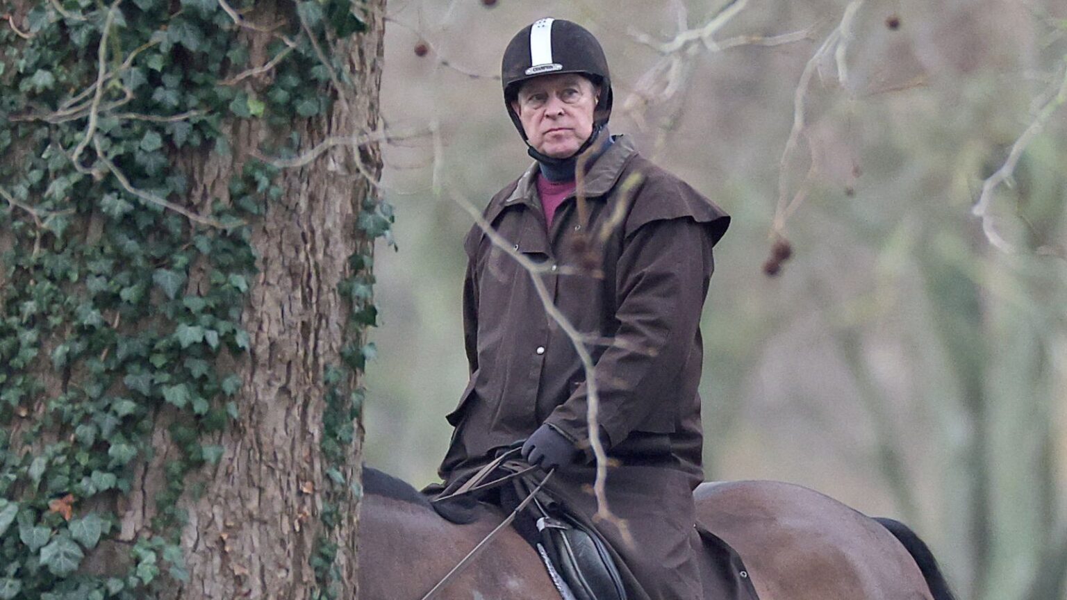 Andrew Mountbatten-Windsor rides a horse in Windsor Great Park. Pic: Reuters